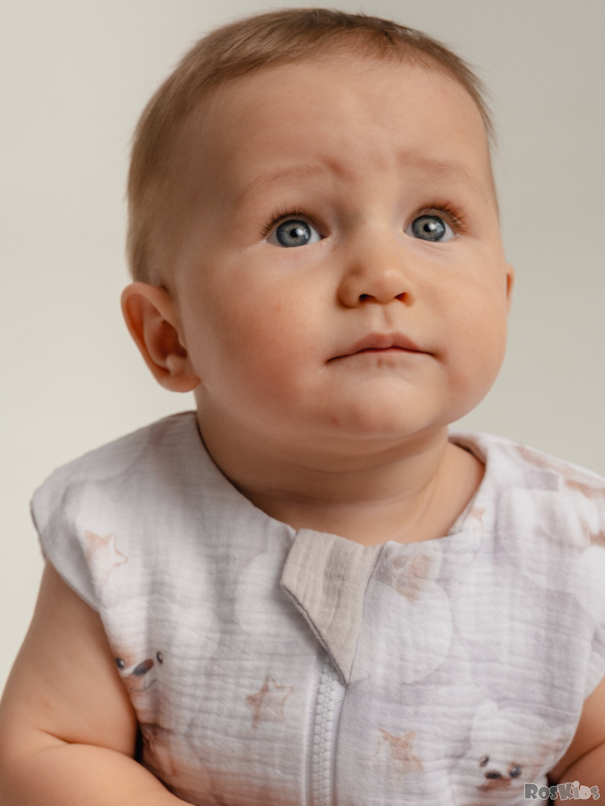 Яркое лицо, живая мимика, радостный и симпатичный ребенок с длинными ресницами. Контактный, веселый, любознательный, активный, не боится людей, "общается" мимикой активно, много улыбается и смеется в голос. легко работает с камерой и внимательно следит за игрушками и движениями людей. не убегает и не прячется. добиться нужного движения или позы от ребенка достаточно просто. фотографировать и снимать одно удовольствие!